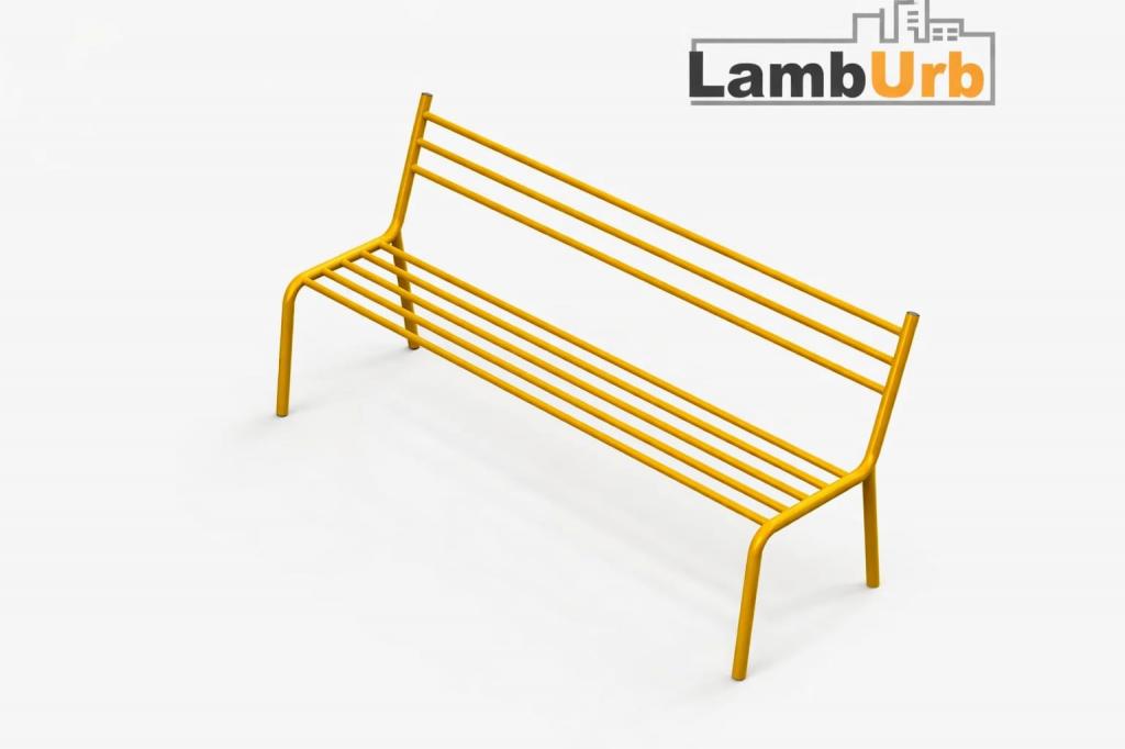 Banco com Encosto fabricado em aço carbono, estrutura principal com tubo redondo 1.1/4” x 2 mm calandrado gradativamente.