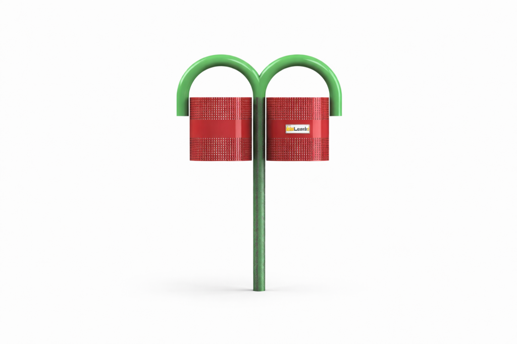 Lixeira fabricado em aço carbono, estrutura principal com tubo redondo de 2.1/2” x 1,5 mm com calandra de 180 graus bilateral na parte superior.