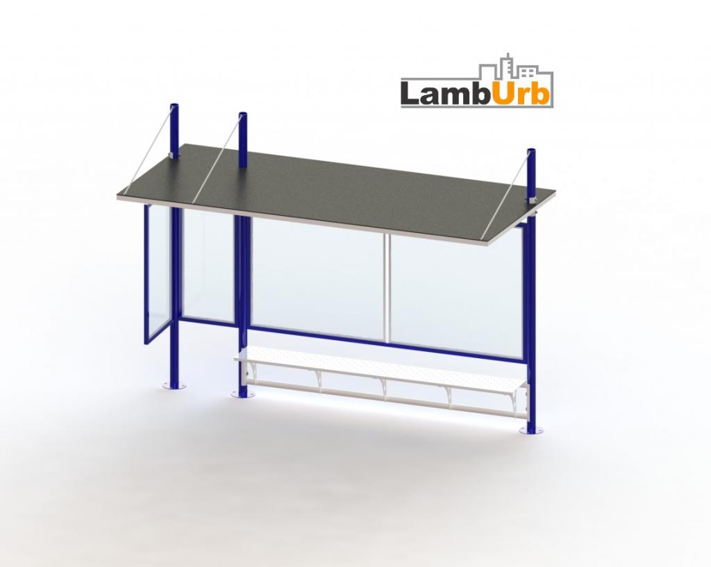 O abrigo de ônibus para 6 pessoas sentadas e um cadeirante, além de espaço coberto para 12 usuários. Possui assento ergométrico com bordas arredondada, quadro em tubos retangulares para colocação de vidro para adesivagem de informações das rotas. Protegendo os usuários das intempéries climáticas (sol, chuva, vento, etc). Montagem em 5 ou mais blocos para facilitar a instalação e deslocamento. Produto com estrutura principal em aço, flange de fixação redonda 270mm com chapa de ¼” para colunas laterais e central, tubo redondo de 3’’ na chapa 14, e detalhe em encaixe de tubo de 3’’ na chapa 14 com encaixe possibilitando a pintura em outra cor. Assento em aço em chapa de 2 mm, furação de 20x80mm e 20mm na parte inferior a laser, com reforço inferior em formato triangular e detalhes em circulo de 50 e 80 mm tubo redondo de 2'e 3’’ chapa 14 para dar sustentação ao triangulo de apoio do assento, estrutura dos quadros para fixação dos vidros em tubo quadrado com 40x40mm na chapa 14, chumbadores ½”x7”, Parafusos 5/8”x40mm, Porca travante 5/8”, Parafuso 12x85mm, Porca de 12 mm. Cobertura em policarbonato resistente a raios ultravioleta, com acabamento em alumínio e isolamento com silicone, chapa metálica galvanizada e tirantes em metal ligando as colunas a ponta do telhado, dando maior resistencia. Vidro cristal incolor para coluna lateral e posterior padrão “blindex” com espessura de 8mm com medida, atendendo a norma ABNT 14698:2001 e Inmetro, estrutura de fixação em alumínio, pronto para adesivagem possibilitando a desmontagem em blocos. Tampa superior em plástico de 3”. Solda MIG, Pintura precedida com banhos químicos com estrutura principal coberta com tinta eletrostática a pó ou liquida. Sistema Elétrico e Iluminação: O abrigo deverá ter sistema iluminação e carregamento de celular autônomo, com produção de energia solar e armazenamento interno. O abrigo deverá ter na cobertura, placa solar fotovoltaica de no mínimo 160w, flexível e acompanhando a curvatura da cobertura. No tubo frontal, que compõe a cobertura, deverá ser construído uma luminária interna no centro do abrigo, com abertura do tubo e dimensão de 100 cm. Deverá ter internamente no tubo, no mínimo duas abraçadeiras fixada interna para suporte da lâmpada tubular, com os devidos soquete. Deverá ser contemplado na luminária uma lâmpada Led tubular de 12 volts, 20w, branco frio de 6500k, com 1 metro de comprimento. O fechamento da luminária, deverá com tela moeda sendo fixada de modo que evite vandalismo. Nas colunas laterais, que compõe o módulo 01, deverá conter embutido ao tubo um soquete, com tomada USB fêmea, com portinhola de proteção e antivandalismo, para carregamento de celular, estando entorno de 50 cm acima da altura do banco. O sistema solar, deverá ser composto de controlador de carga para painel solar, com corrente nominal de carga mínima de 60A, corrente nominal de descarga de 20A, com proteção contra curto-circuito, proteção contra sobrecarga, proteção contra descarga excessiva e proteção contra inversão de polaridade. O sistema solar deverá ter bateria estacionária de mínimo 30Ah de 12V, sendo homologado pela Anatel e certificadas pela ISO. Deverá ter Fotocélula 12v 10a relê foto elétrico acende noite. Deverá o abrigo ter um gabinete a prova de violações, sendo que a porta deverá ter chave tipo 'vale', com miolo e chave todos os abrigos contratados. O gabinete deve satisfazer as recomendações da ABNT NBR IEC 60529 para ser classificado como IP54, bem como deve ser à prova de poeira e chuvas, e não apresentar ângulos salientes. O gabinete deverá ter dimensão compatível para comportar a bateria estacionária, controlador de carga, temporizador, e demais equipamentos elétricos que se fazer necessário. O gabinete deverá ser soldado ou parafusado de modo a garantir a fixação do mesmo na estrutura do abrigo e evitar furto ou vandalismo. A fiação deverá ser embutida por dentro dos tubos, metalon e demais estrutura do abrigo, de modo que evite vandalismo, não sendo aceito fiação aparente e conduítes que possa prejudicar a estética do abrigo. Identificação dos produtos com material anti-vandalismo adesivo com a marca, modelo, mês/ano e demais informação do fabricante. Dimensões aproximadas para instalação: 3000x2000x4000mm (AlturaxLarguraxComprimento), Peso: 80kg.