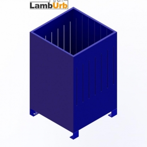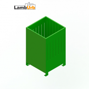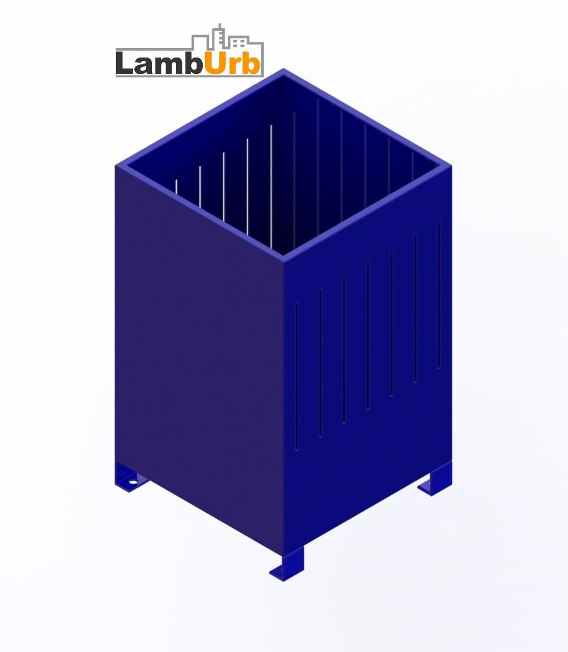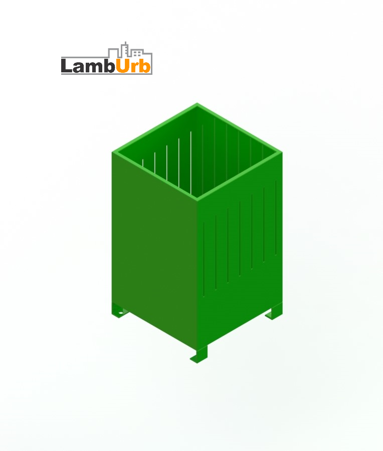 Lixeira fabricada em aço carbono, estrutura principal com chapa 16 calandrada para reforço estrutural.