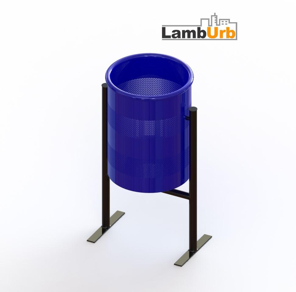 Lixeira fabricada em aço carbono, estrutura principal com dois tubos redondos de 1.1/2” x 2 mm.
