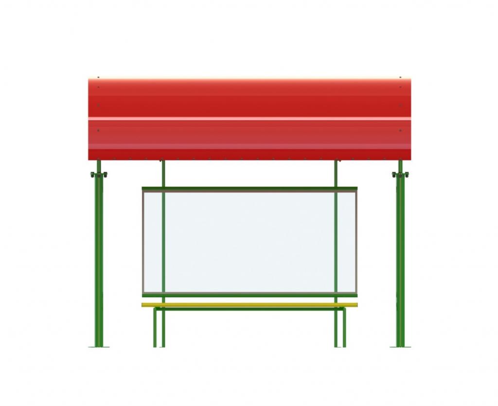 Espaço para 4 pessoas sentadas e um cadeirante, além de espaço coberto para 8 usuários. Possui bancos e encostos ergométrico com bordas arredondadas, com iluminação noturna e quadro em vidro para adesivagem de informações das rotas. Montagem em 5 blocos para facilitar a instalação.