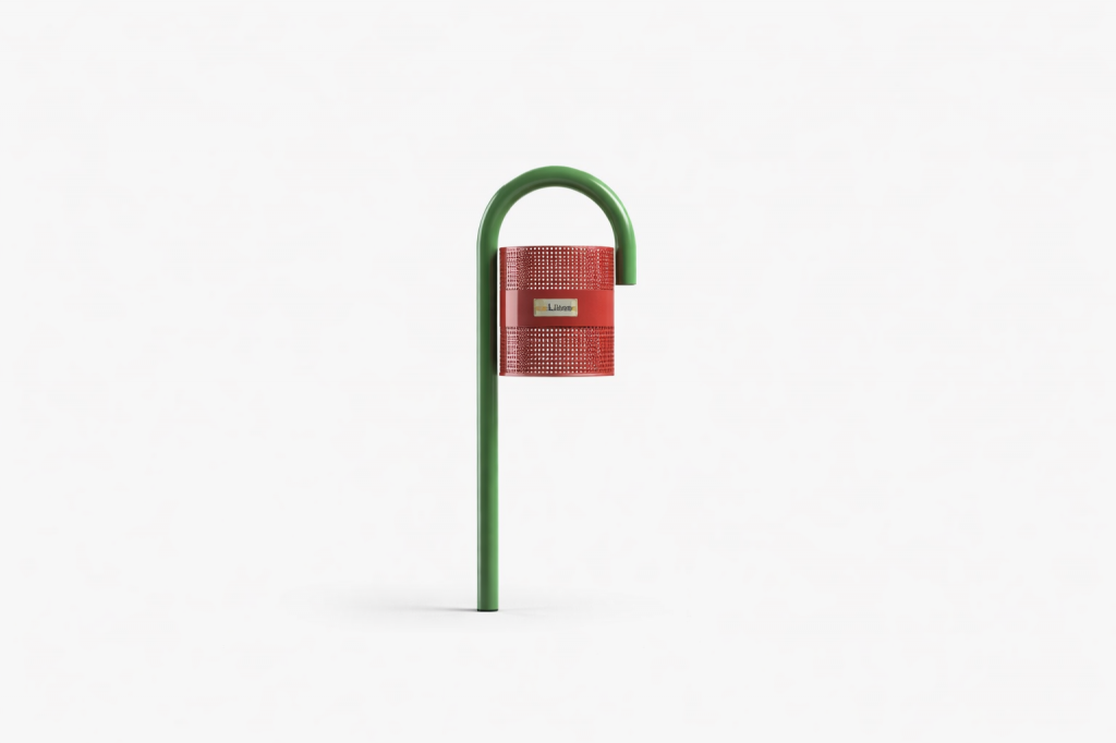 Lixeira fabricado em aço carbono, estrutura principal com tubo redondo de 2.1/2” x 1,5 mm com calandra de 180 graus na parte superior.